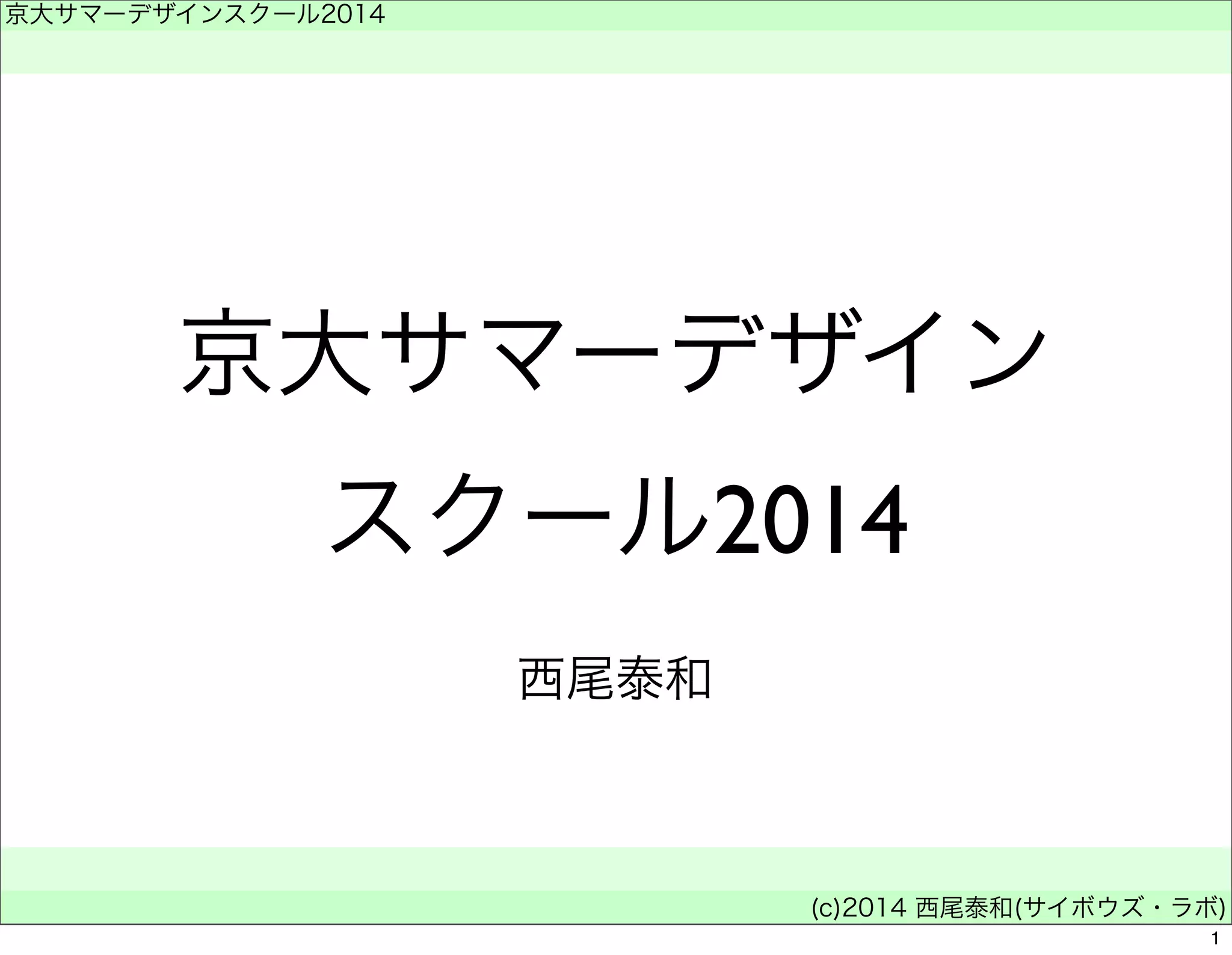 このスライドは、サイボウズ・ラボの西尾泰和と竹迫良範が、 京都大学サマーデザインスクール 2014で行った「学び方のデザイン」の講義資料の一部です。 他のスライドは http://nhiro.org/kuds2014/ で見つけることができます。