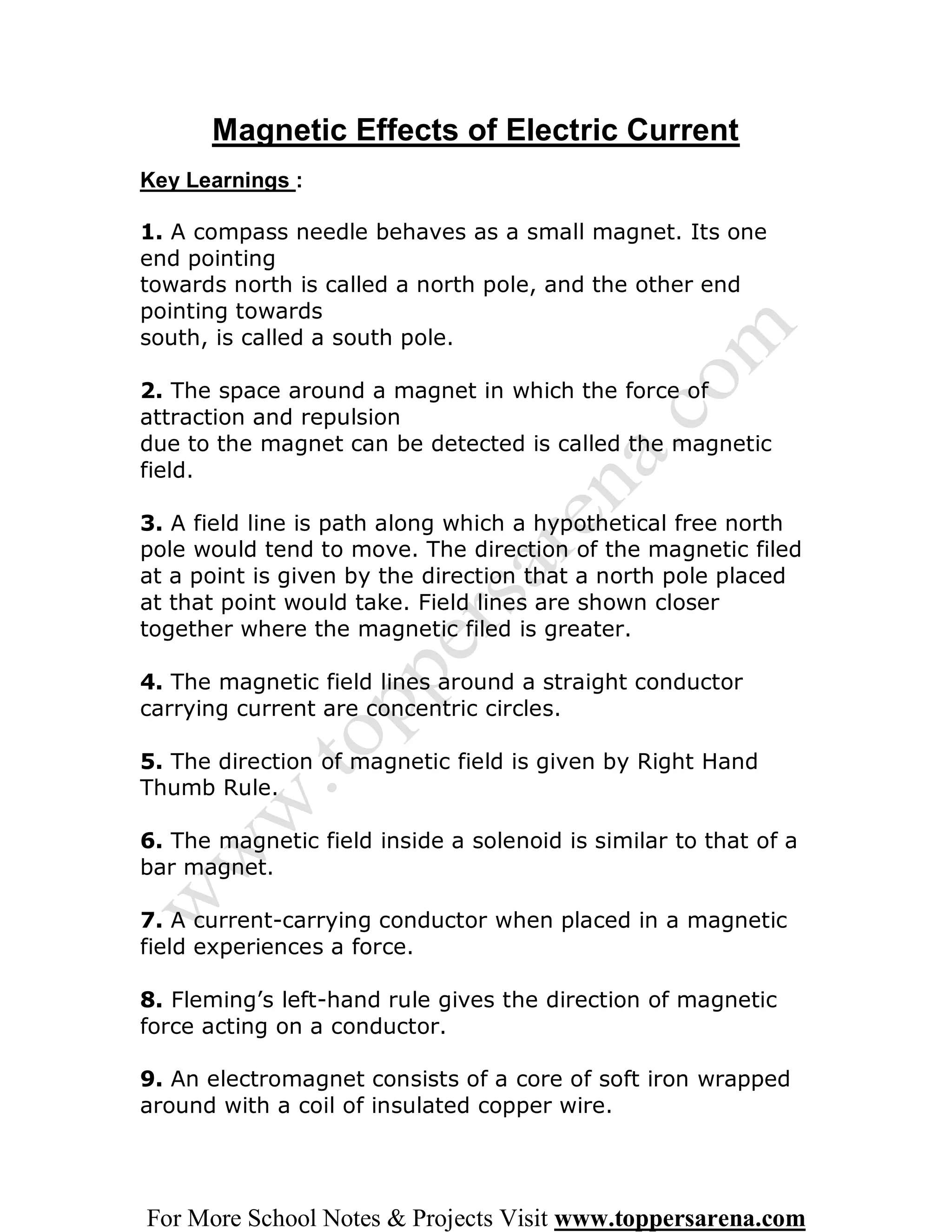 The document discusses the magnetic effects of electric current. It explains that a compass needle behaves like a small magnet, and that a magnetic field exists around any magnet or current-carrying conductor. It also describes how electromagnets, electric motors, and generators work based on the principles of magnetic fields and electromagnetic induction. Additionally, it provides details about household AC power distribution, including the purpose of the three wires used in electrical wiring.