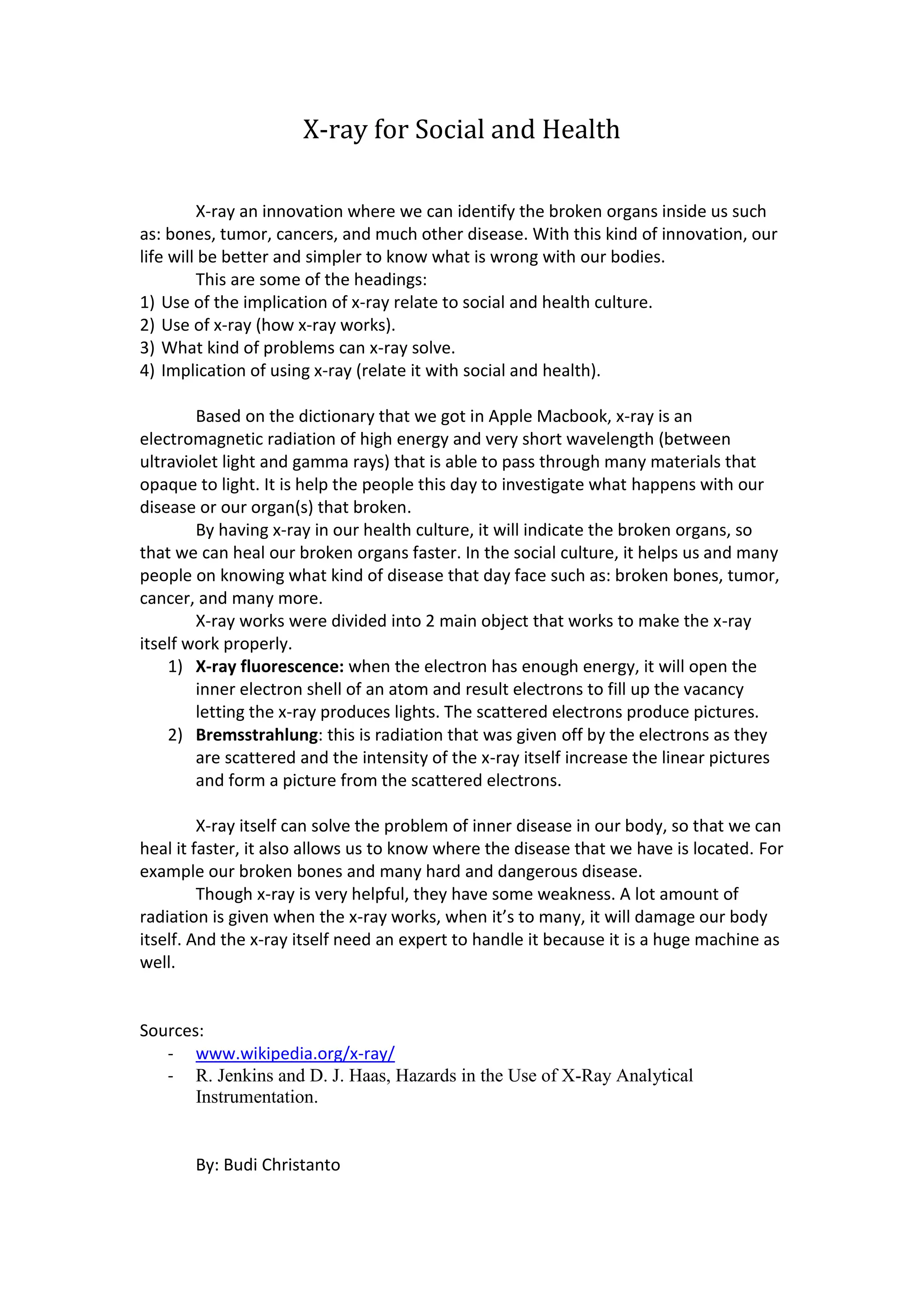 X-ray technology allows doctors to identify broken bones, tumors, cancers, and other internal diseases or injuries. It works by emitting electromagnetic radiation that can pass through tissues but is absorbed or scattered by dense structures like bones. This helps locate problems inside the body so they can be treated more quickly. While very helpful, x-rays do carry radiation risks if overused or mishandled, so expertise is required in their application for medical diagnosis and analysis.