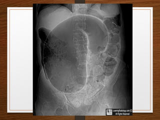 • Dilated small-bowel loops are usually more numerous and arranged centrally in