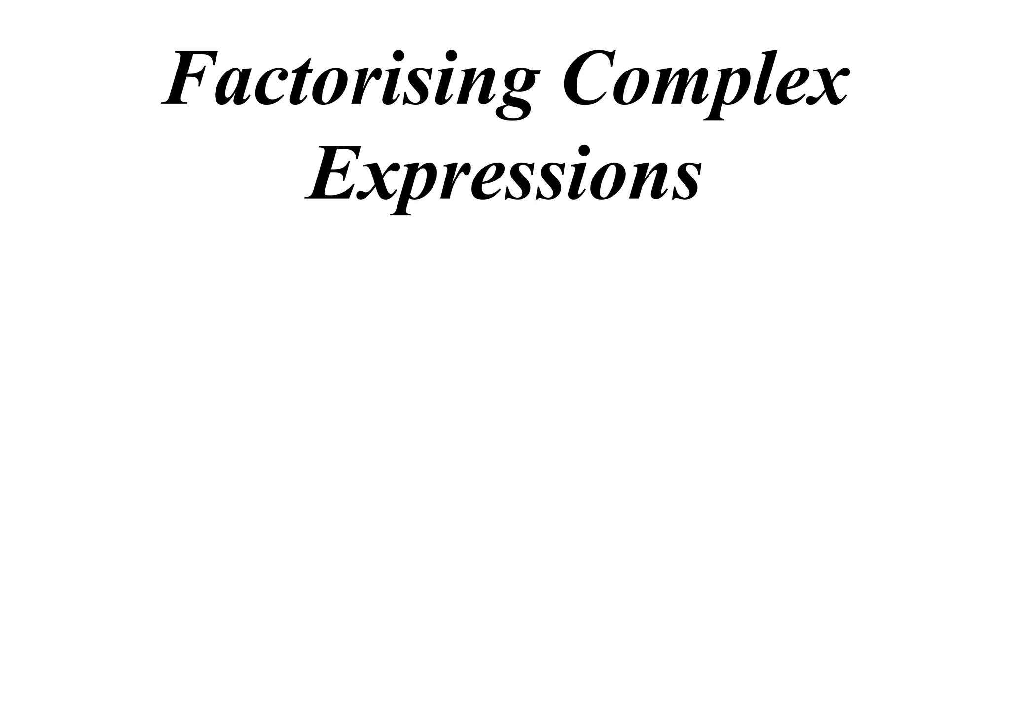 The document discusses factorizing complex expressions. The main points are:
