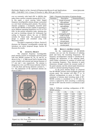 This paper presents a novel steering wheel shaped frequency reconfigurable microstrip patch antenna designed for cognitive radio systems, capable of operating at seven different frequencies from 6.25 to 8.25 GHz. The antenna employs four RF-MEMS switches to achieve reconfiguration and was simulated using CST Microwave Studio, demonstrating favorable characteristics such as low return loss and good directivity. The results highlight the potential applications of this antenna design in efficient frequency spectrum utilization for cognitive radio technologies.