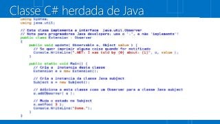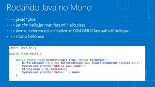 This document discusses developing applications for Android platforms using Java code. It mentions several Microsoft technologies that are open source like ASP.NET and Silverlight. It also references dynamic language runtimes and links to videos about coding magic and employees using different phone platforms.