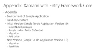 Fukuoka.NET #9 material: This is the material written about Xamarin with Entity Framework Core. Changed url of sample codes on Github.com https://github.com/tafuji/Xamarin-EFCore-1.1.5