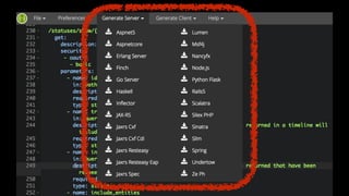 - Details about the Swagger specification and examples of using Swagger code generation to generate API client code in C# from a Swagger specification. The generated code includes models, API interfaces, and an API client to call the API.