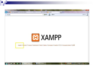 This document provides instructions for installing XAMPP on a PC to set up a local LAMP development environment. It explains that XAMPP bundles Apache, MySQL, PHP and phpMyAdmin for easy installation on Windows. The installation process takes about 5 minutes and involves downloading and extracting XAMPP, then starting the Apache and MySQL services. It also provides steps for creating a WordPress database using phpMyAdmin to complete the LAMP configuration.
