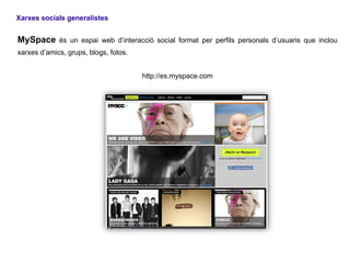 MySpaceés un espai web d’interacció social format per perfils personals d’usuaris que inclou