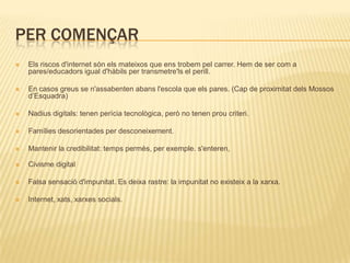 Els riscos d'internet són els mateixos que ens trobem pel carrer. Hem de ser com a