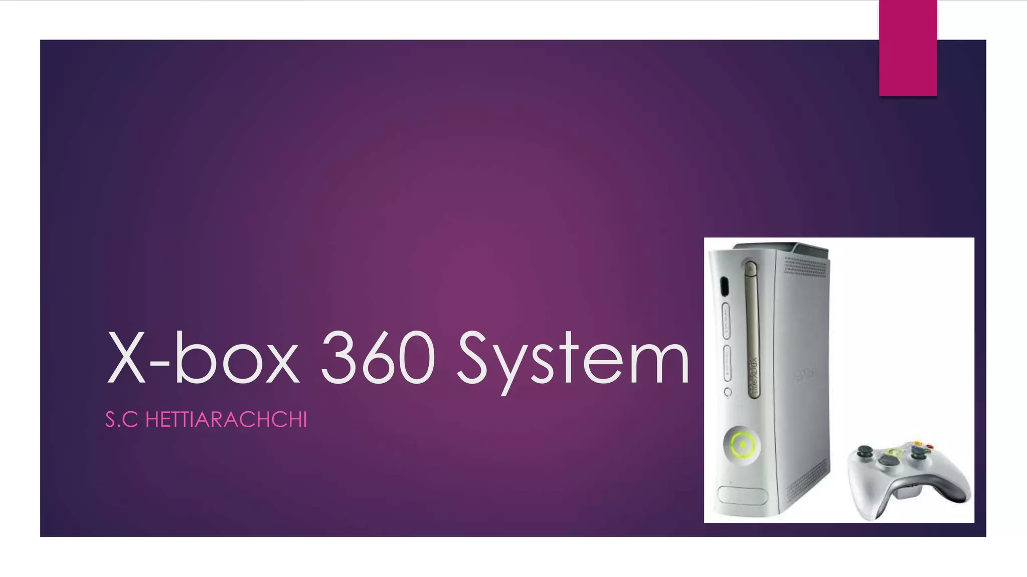 The Xbox 360 is Microsoft's video game console introduced in 2005. It uses a custom IBM multi-core PowerPC processor and ATI graphics card. It has 512MB of RAM and supports up to four wireless controllers. The Xbox 360 introduced Xbox Live for online multiplayer gaming. Later, Kinect was added, using infrared and video cameras to track a user's body movements and voice to control games without a controller. The Xbox One features improvements like an 8-core AMD processor, 8GB of RAM, and enhanced graphics capabilities over the Xbox 360.
