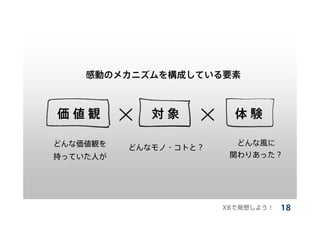 札幌メディアアートフォーラムでの講演資料です。ユーザエクスペリエンスの事例紹介と体験デザインのためのアイデア発想法XBの工程がわかります。