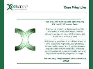 Xcelience is a premier provider of preformulation, analytical, formulation development, manufacturing, and clinical packaging solutions. They have established expertise in accelerating drug development timelines, with a focus on quality and ensuring compound success. Their expanded facilities and market-leading expertise in areas like powder-in-capsule formulations enable reduced development risks and timelines for clients.