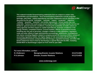 This document summarizes Xcel Energy's strategy to implement capital investments and increase returns. It outlines a $5.7 billion capital expenditure plan from 2006-2009 focused on rate base assets. This includes investments in coal plant refurbishments and a new coal plant. It discusses regulatory filings and rate cases to increase returns, including a pending Minnesota rate case. The strategy aims to deliver attractive total returns through dividend growth and EPS growth of 5-7% annually while maintaining investment grade credit ratings.