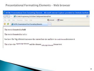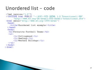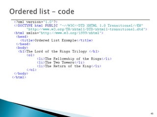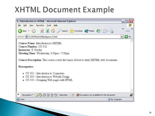 The document discusses the basics of XHTML including: