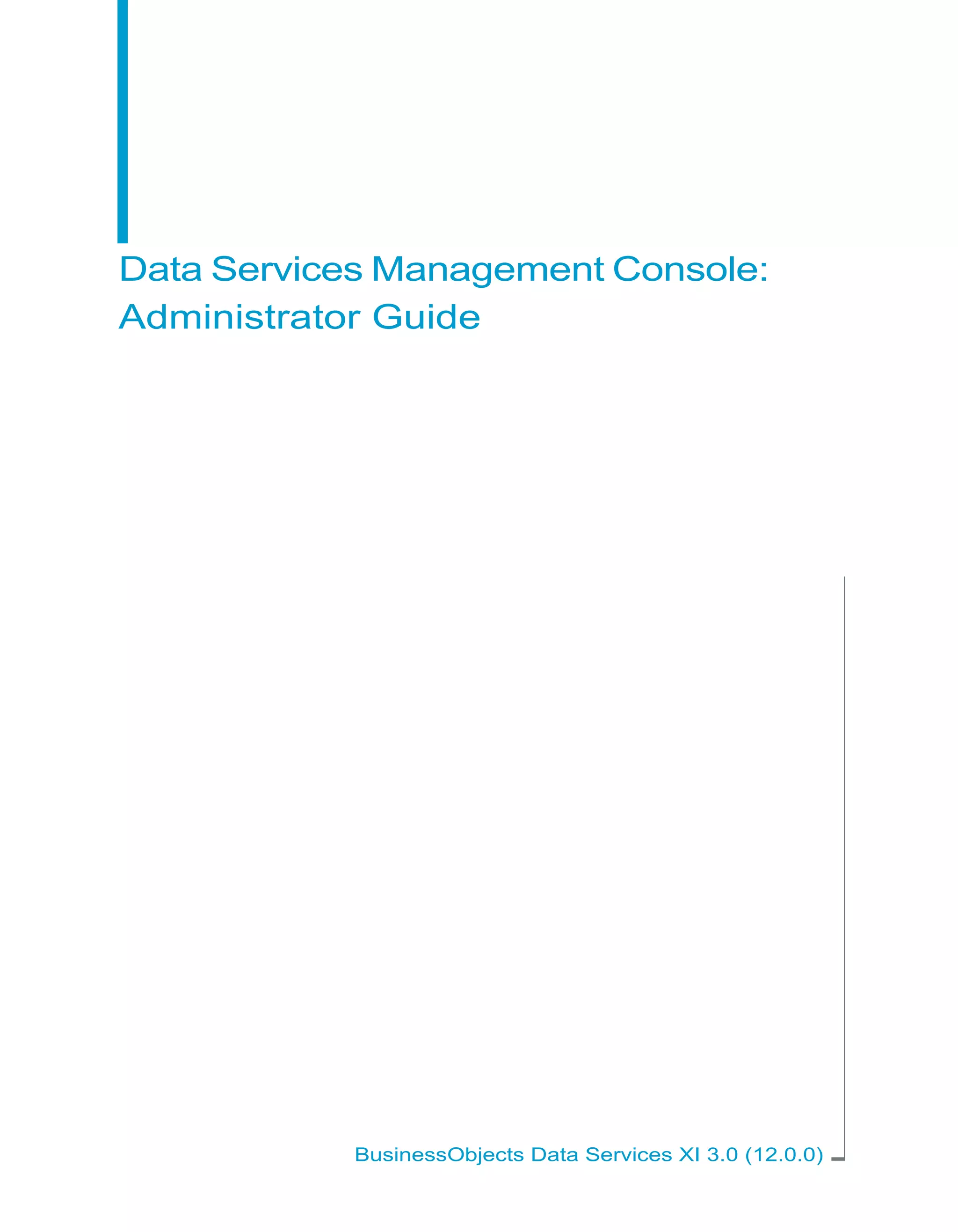 This document provides an overview and introduction to the Data Services Management Console: Administrator Guide. It welcomes the reader to Data Services XI Release 3 and lists the documentation set. It describes how to access the documentation on Windows and UNIX systems as well as from the Business Objects website. Finally, it provides Business Objects' information resources for customer support, consulting, training, and submitting documentation feedback.