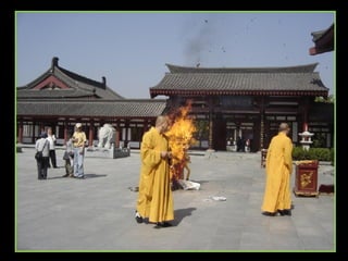 This document provides a brief tour of sights to see in Xi'an, China, including the famous Terracotta Army of Qin Shihuang, the City Wall of Xi'an, Big Wild Goose Pagoda, local food and people, Bell Tower Pagoda, Xi'an airport, and notes that Xi'an is where the Silk Road began. Photos were taken during a visit in May 2006.