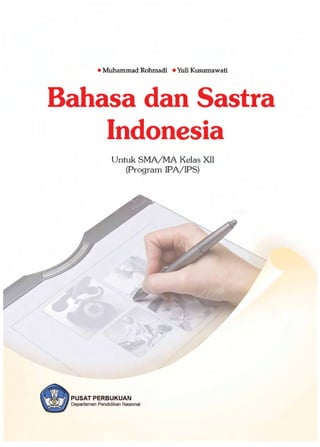 Buku 'Bahasa dan Sastra Indonesia 3' untuk kelas XII, yang diterbitkan oleh Pusat Perbukuan Departemen Pendidikan Nasional pada tahun 2008, mencakup berbagai topik penting dalam pembelajaran bahasa dan sastra. Buku ini menyediakan materi sesuai dengan lima kompetensi bahasa yang terintegrasi dan telah dinilai layak untuk digunakan dalam proses pembelajaran oleh Badan Standar Nasional Pendidikan. Departemen Pendidikan Nasional juga mengalihkan hak cipta buku ini untuk disebarluaskan kepada masyarakat, yang dapat mengunduh dan mengakses buku tersebut secara bebas.