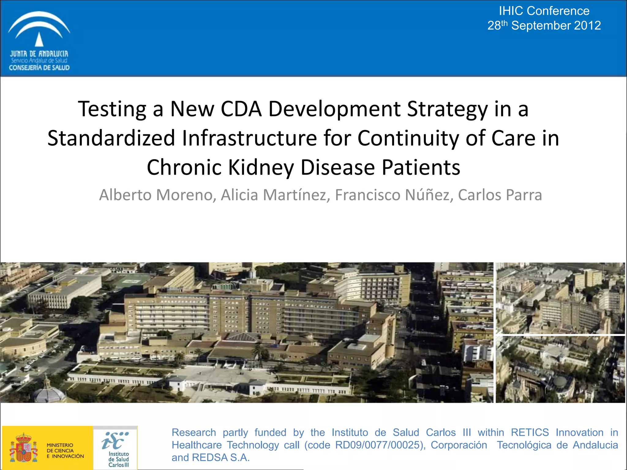 1) The document discusses a project to develop a platform for a nephrology department to provide continuity of care for chronic kidney disease patients, including those transferred to external dialysis centers.