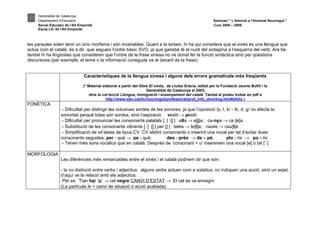 .- Dificultat per pronunciar les consonants palatals [. ] [] ] : ella → e[j]a; ca-nya → ca [n]a