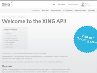 The document discusses the importance of omnipresent social data and its impact on human communication patterns due to mobile devices. It highlights the success of the Xing API and its features which enable developers to create applications, emphasizing creativity and innovation. It also touches on data security and the necessity of adapting to rapid data creation trends.