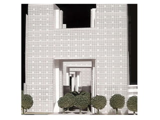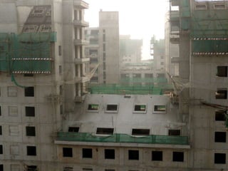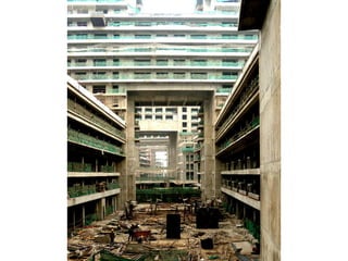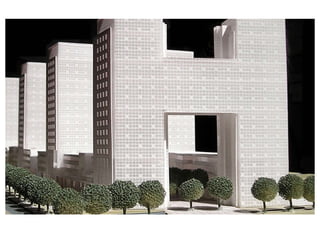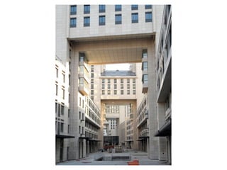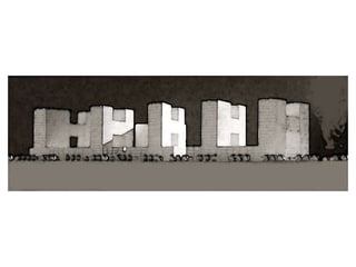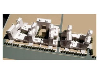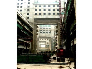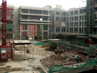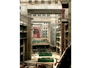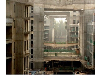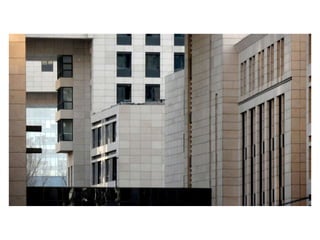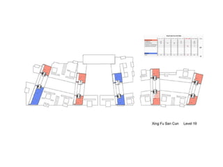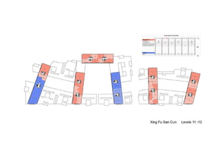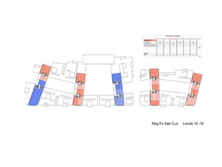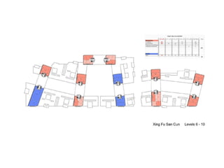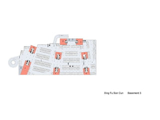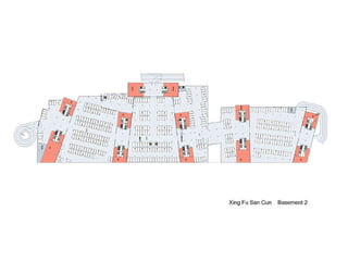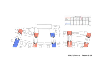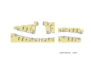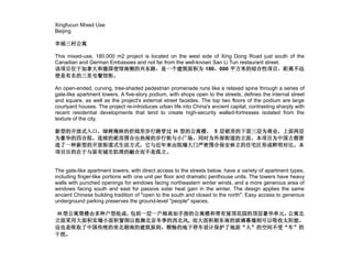 The document discusses the Xing Fu San Cun Mixed Use Development project in Beijing, China. It includes the project name repeated multiple times as well as images of the planned and actual south and north elevations of the development.