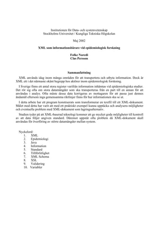 XML som informationsbärare vid epidemiologisk forskning