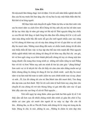 Chuyến trở về xóm Bến của nhóm bạn thân sau 30 năm xa cách dày đặc ký ức và cảm xúc, nhất là trong cái rét cuối năm của miền Bắc. Họ tìm lại quá khứ, những kỷ niệm đau thương và đẹp đẽ gắn liền với cuộc sống khốn khó trong thời chiến tranh. Cuộc gặp gỡ với những người quen cũ và khung cảnh quen thuộc gợi nhớ về những tháng năm thanh xuân đã để lại nhiều dư âm vĩnh viễn trong tâm hồn họ.