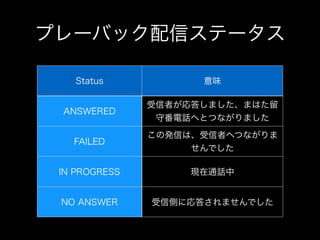 The document contains two HTTP responses. The first is a 201 response indicating a call was created with a given call ID. The second is a 200 response providing details of the call including its duration, parties, timestamps, and status of ANSWERED along with a URL for further details.