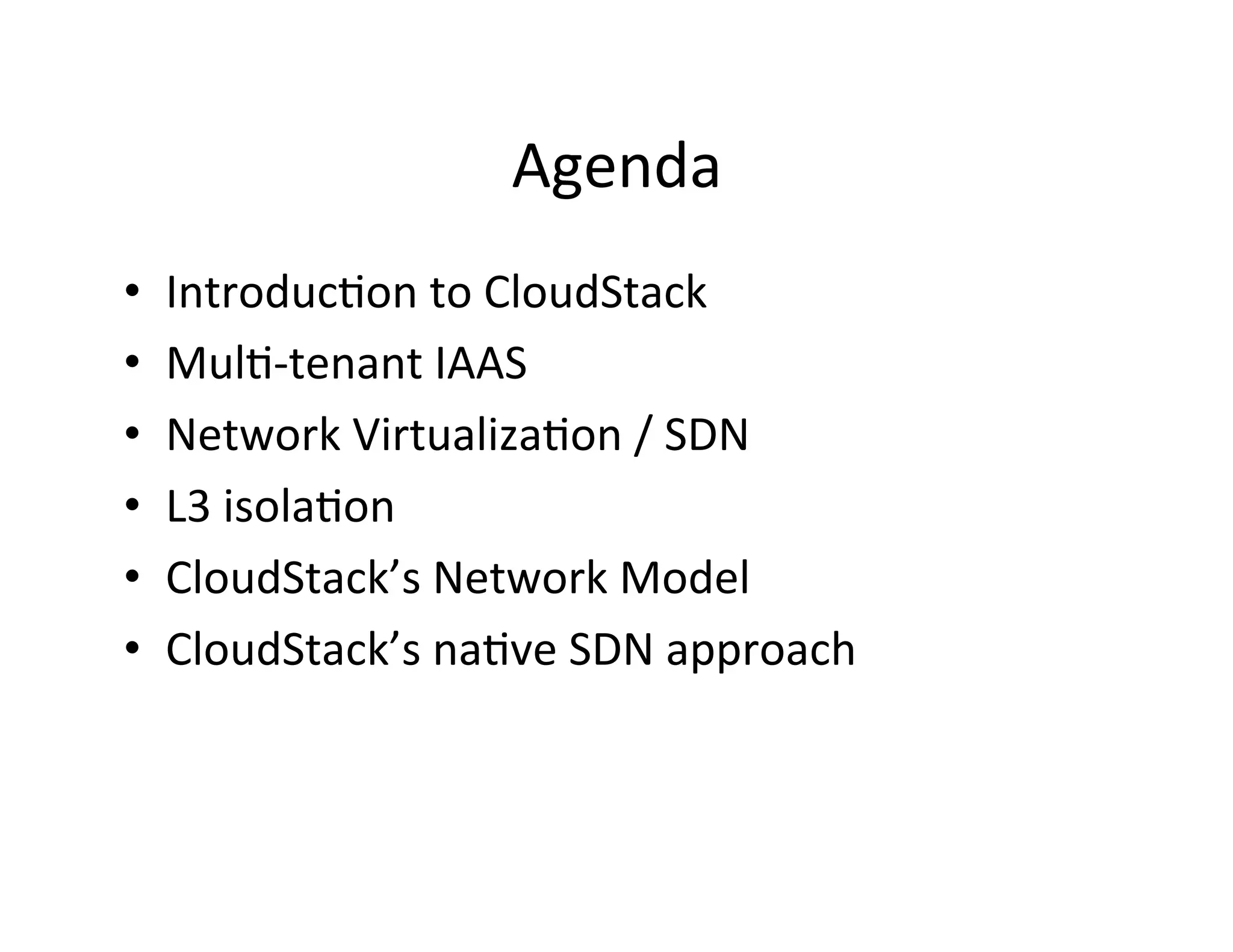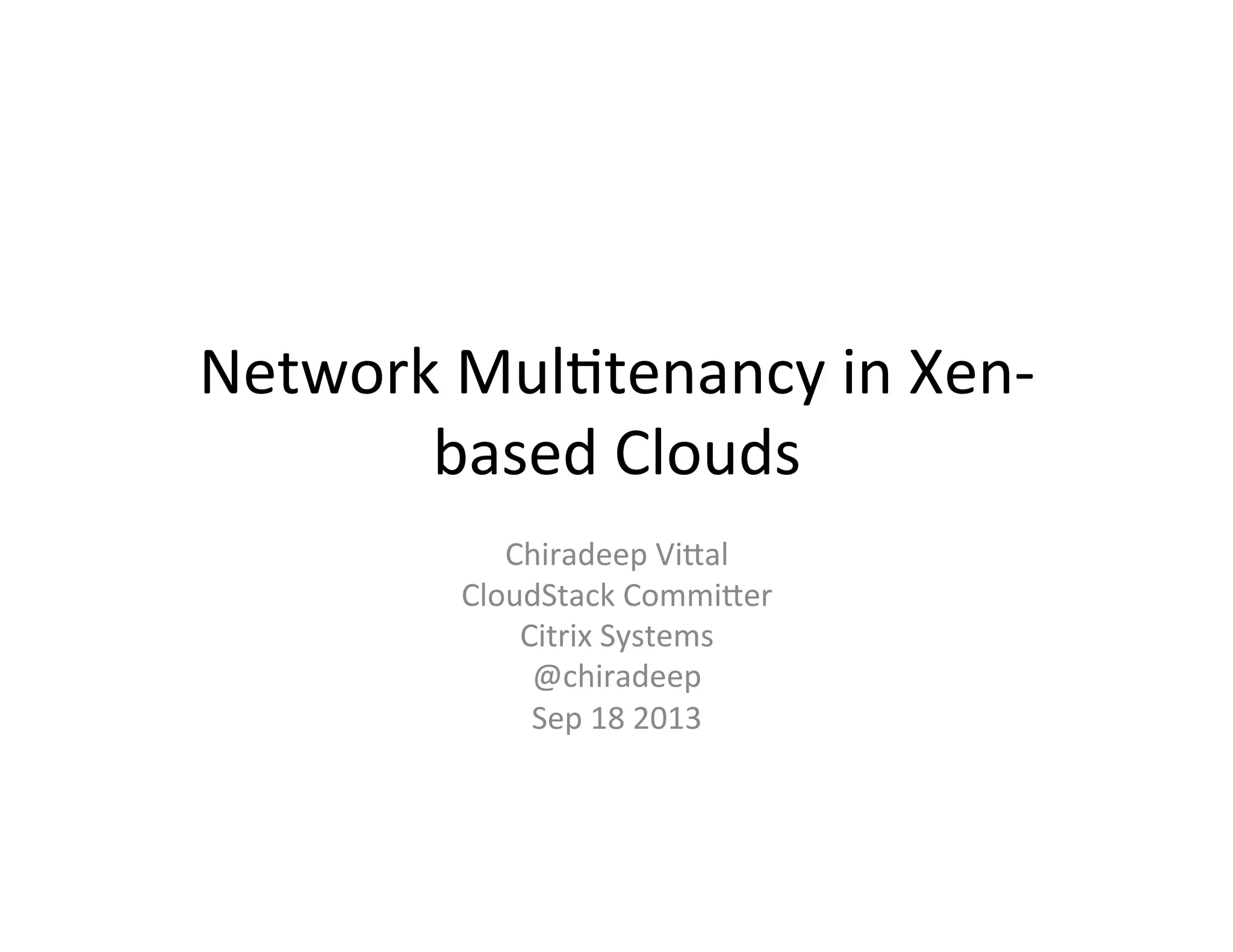 The document provides an overview of CloudStack, a cloud computing platform based on Xen, discussing its multi-tenancy, network virtualization, and service isolation options. It explains how CloudStack orchestrates resources utilizing network services like IP address management, load balancing, and firewall capabilities, alongside its various network isolation techniques such as L2 and L3 isolation. Additionally, it highlights CloudStack's integration with SDN technologies and offers a service catalog example for managing cloud services.