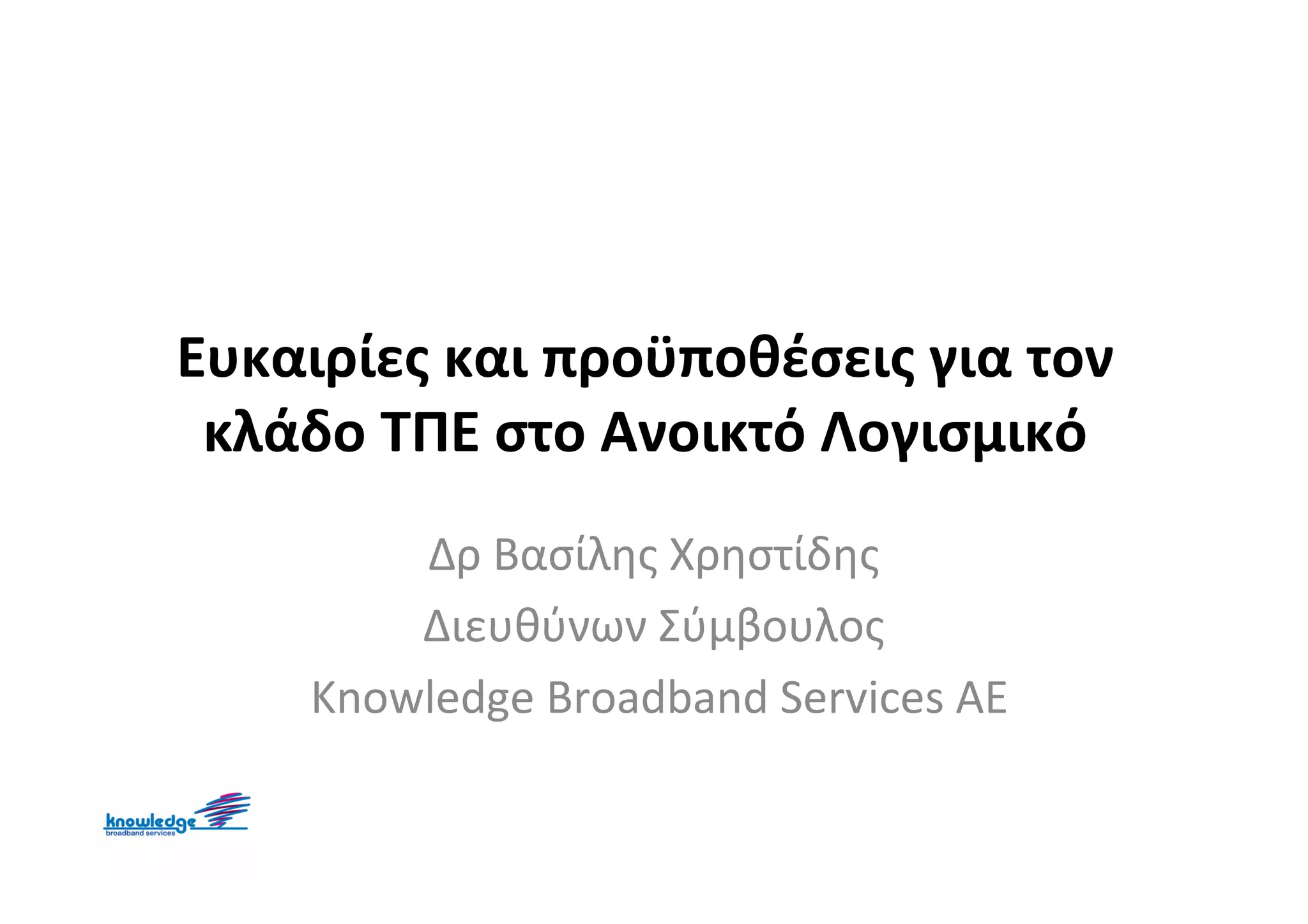 κλάδο ΤΠΕ στο Ανοικτό Λογισμικό