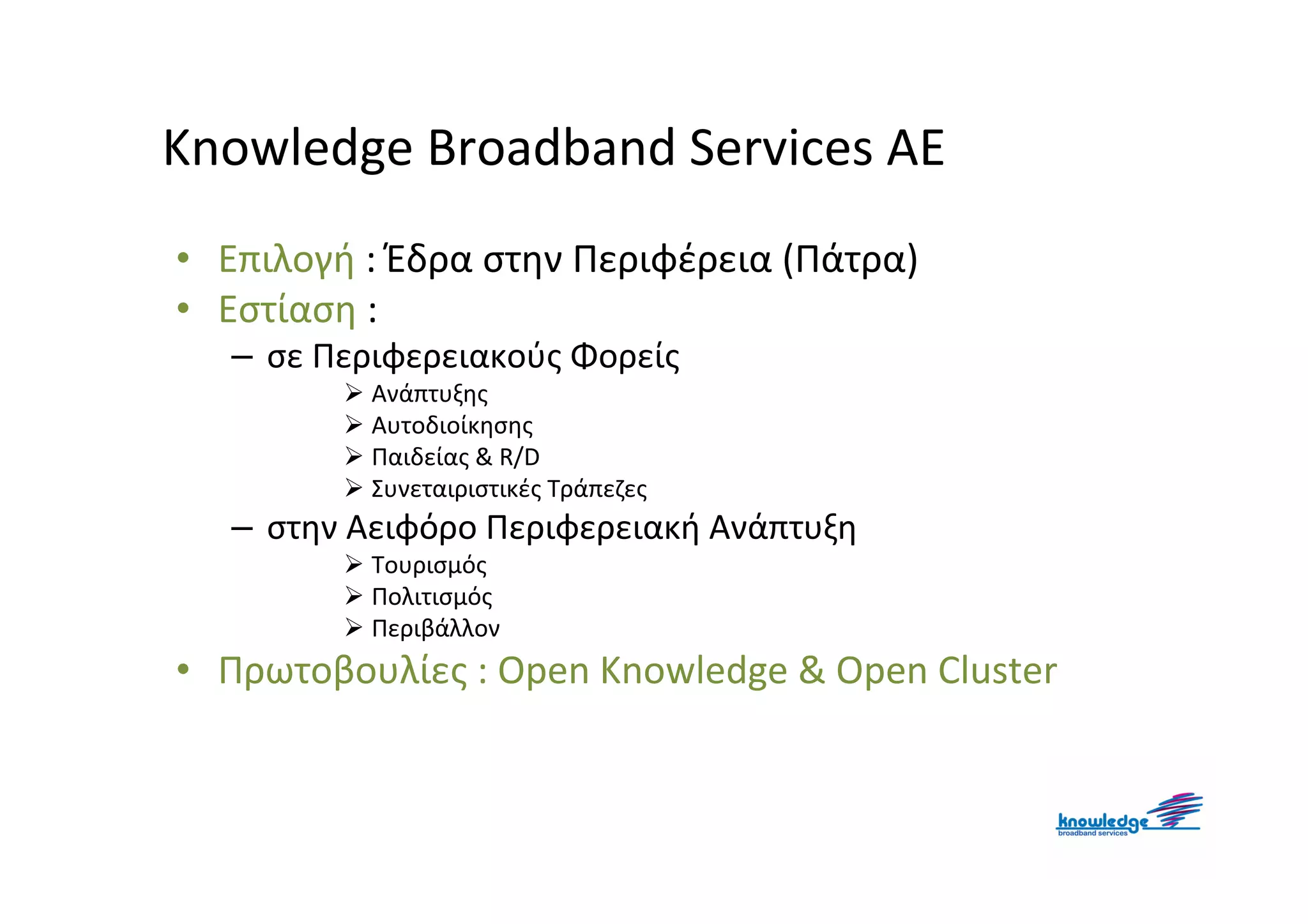 • Πρωτοβουλίες : Open Knowledge & Open Cluster
