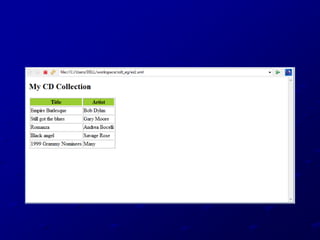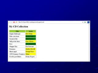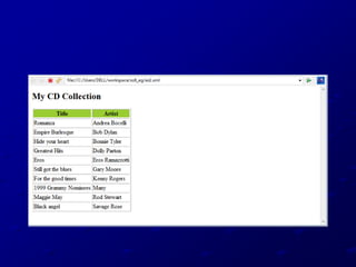 XSLT is used to transform XML documents into other XML documents or HTML. It uses XPath to navigate XML documents. Templates are used to define transformation rules that are applied when nodes are matched. Common elements used in XSLT include value-of to extract node values, for-each for loops, apply-templates to apply templates to child nodes, and copy to duplicate nodes in the output. Conditional logic can be added using elements like if, choose, when and otherwise.