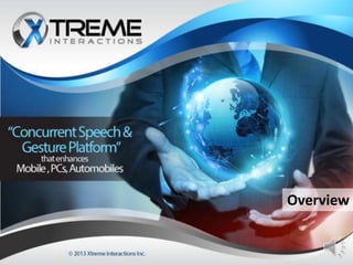 The document discusses a vision for enhancing productivity through integrated speech and gesture processing, addressing limitations of traditional apps such as navigation space and cognitive load. It introduces innovative products like xconnect and xplaces planned for release in 2013, which aim to improve user experience and interaction efficiency. The company is seeking collaboration and investment opportunities to further develop these technologies.