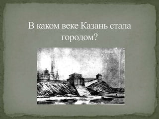 Документ посвящен истории города Казани с древнейших времен до конца XVI века. В нем рассматриваются ключевые события, влияющие на развитие города, и его культурное наследие. Работу выполнила учитель начальных классов Потапова Р.А.