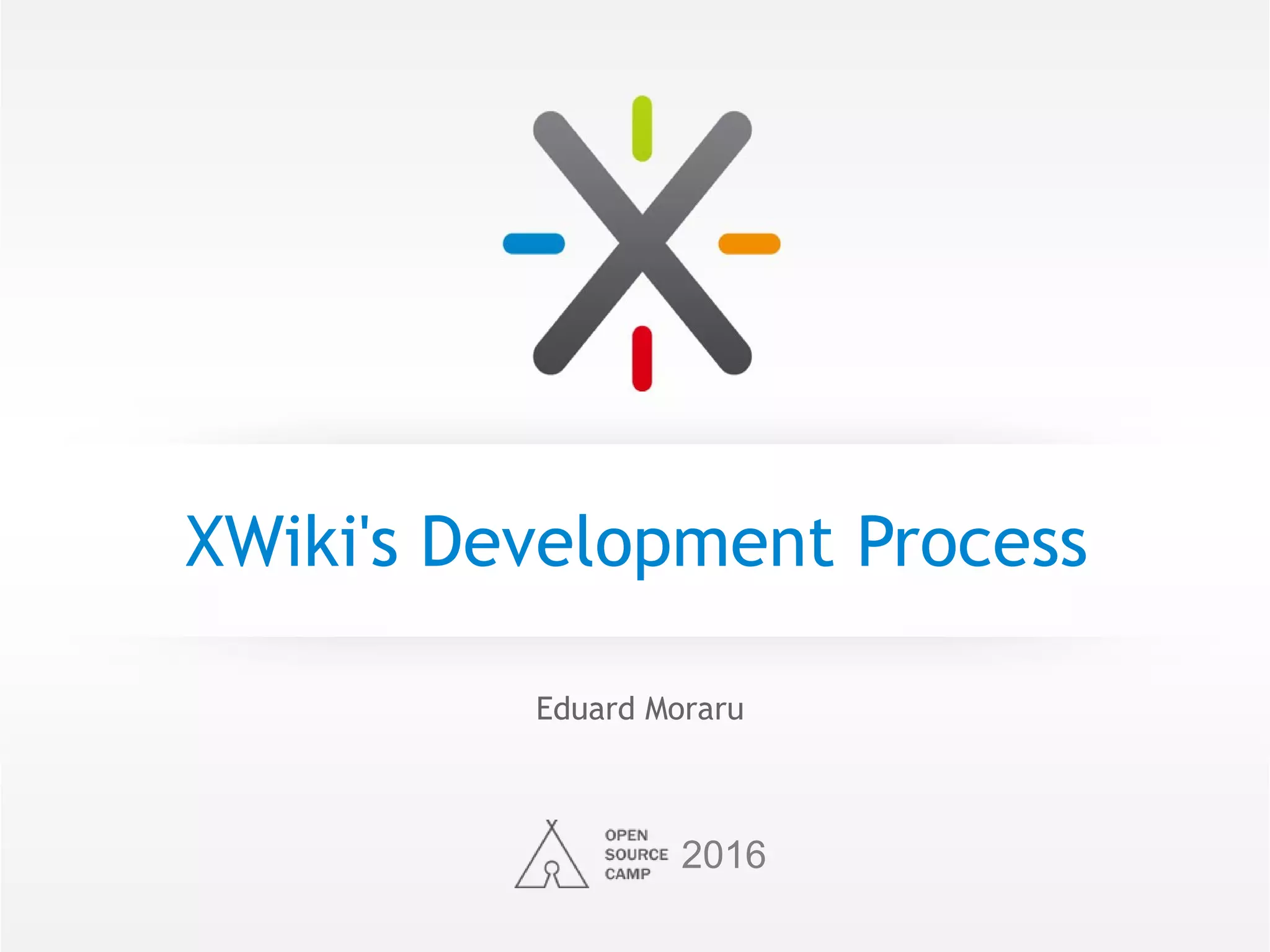 XWiki is a web-based platform that enhances the wiki paradigm with features like modularity, version control, and user management, aimed at knowledge sharing and collaboration across various use cases. The development community operates under a meritocracy model with structured processes for contributions, releases, and quality control, managing active engagement through multiple communication channels. XWiki is commercially supported by XWiki.com, providing professional services while fostering an open-source development environment with extensive contributor involvement.