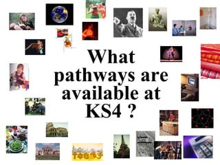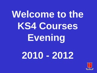 This document provides information about course options and requirements for students in Key Stage 4 (years 10-11) at a school. It outlines the core subjects that all students must take, including English, maths, science, religious studies, citizenship, and PE. Students can then choose from over 20 additional GCSE subjects or vocational courses. The document provides details on subject areas and diploma options. It explains the process for students to indicate their preferred subjects and backup choices by a deadline to facilitate timetable planning.