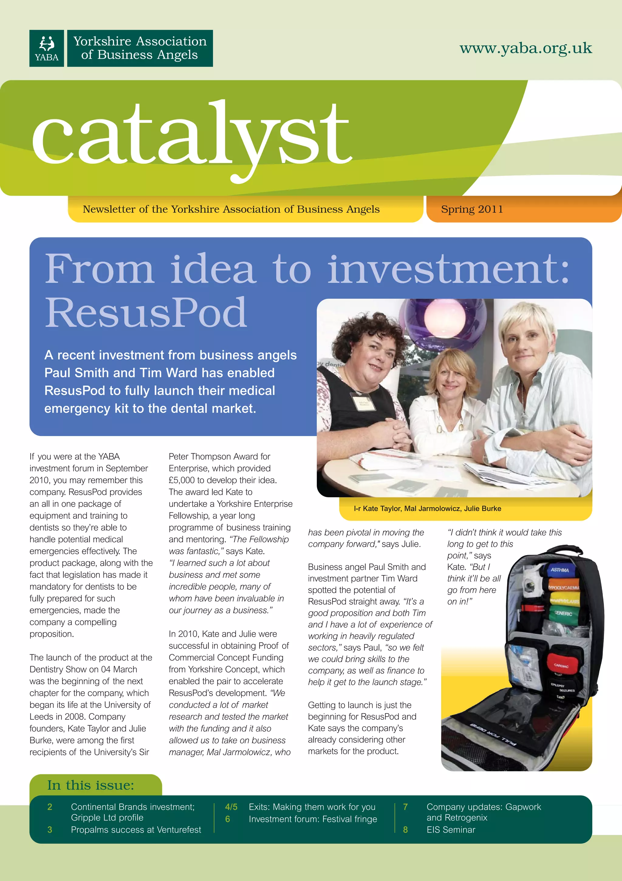3) Business angels Paul Smith and Tim Ward recently invested in ResusPod, enabling the company to fully launch their medical emergency kit to the dental market. This investment has helped move the company forward.