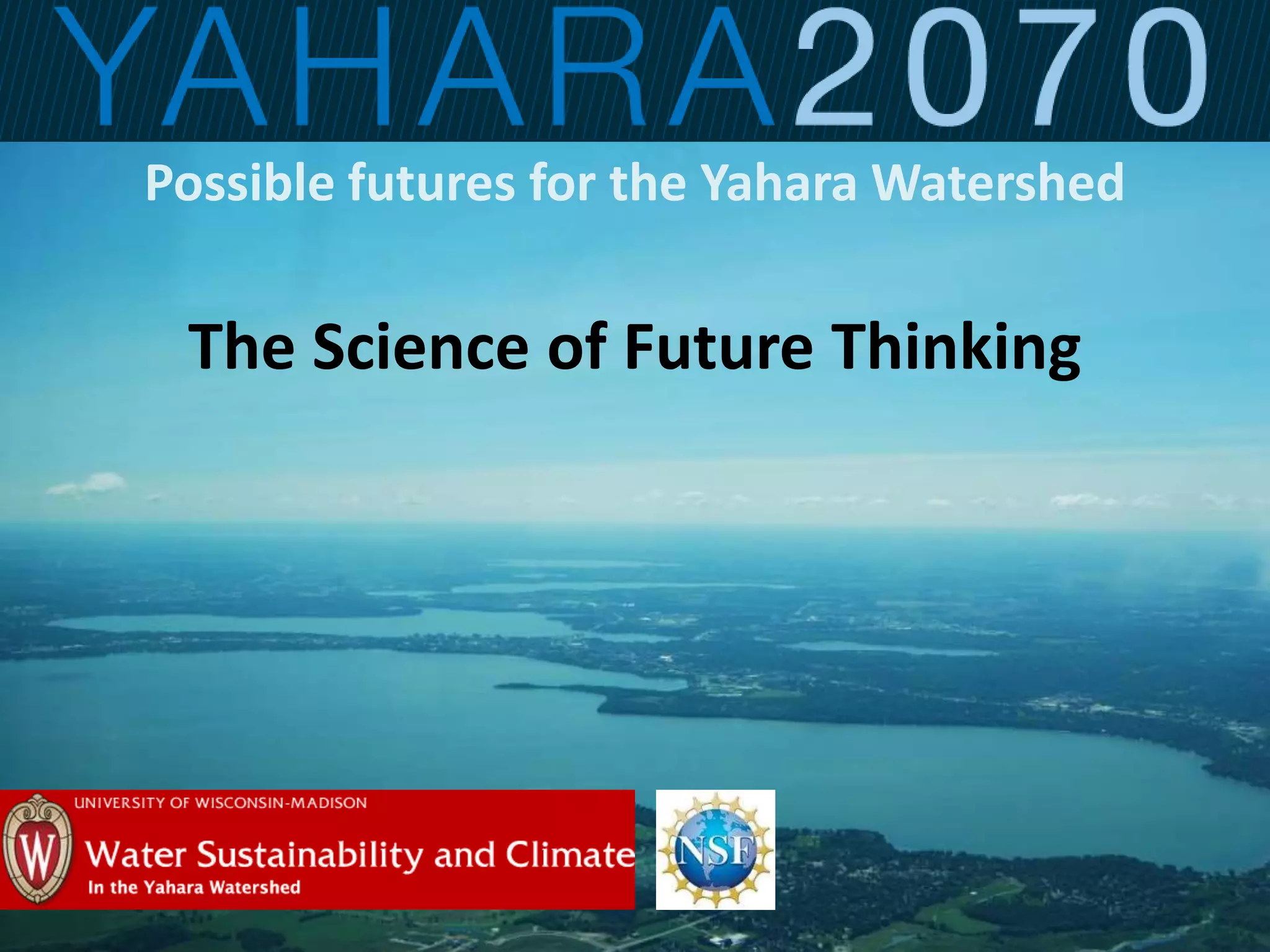 The document discusses potential futures for the Yahara watershed, emphasizing the interplay between human actions and ecological systems. It identifies long-term challenges such as agricultural intensification, urban development, and climate change that affect ecosystem services and water quality. Four scenarios are proposed to stimulate discussions about future choices, trade-offs, and the resilience of the watershed by connecting different perspectives and potential pathways.