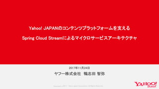SpringFest2017の以下のセッションの資料です。 Yahoo! JAPANのコンテンツプラットフォームを支えるSpring Cloud Streamによるマイクロサービスアーキテクチャ http://springfest2017.springframework.jp/