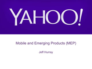 Yahoo was founded in 1994 by Jerry Yang and Dave Filo and had its most successful year in 2000 during the dot-com bubble, followed by its worst year in 2001 when the bubble burst. The document discusses Yahoo's mobile and emerging products division and apps, notes that it has stabilized financially after a rocky road, and expects Yahoo to make acquisitions, release innovative new apps, and focus on personalization to better compete against companies like Google, ESPN, and Huffington Post.