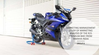 This document provides information about Yamaha Motors Corporation and their R15 premium bike model in India. Some key points: