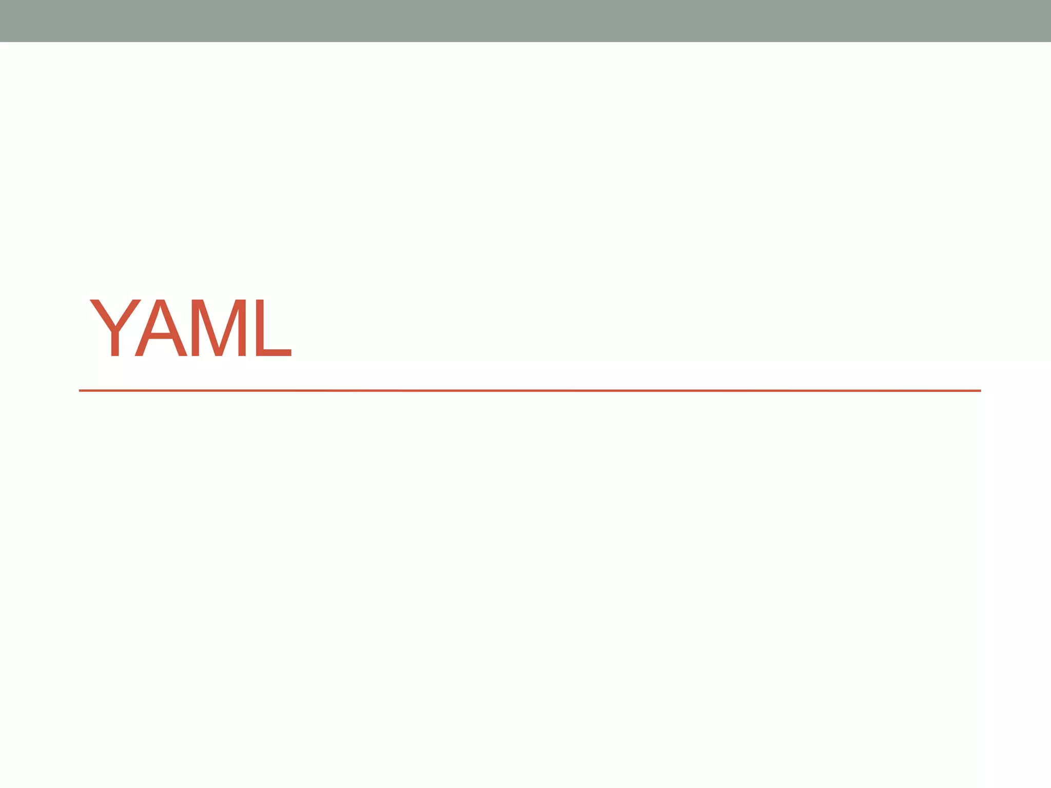 YAML (YAML Ain't Markup Language) is a human-friendly data serialization language designed for easy readability and integration with modern programming languages, unlike XML. It facilitates simplified representation of structured data and is specifically aimed at enhancing programmer efficiency by clarifying configuration and messaging formats. Basic syntax includes the use of indentation, lists, and key-value pairs, with advanced features supporting relational trees and user-defined data types.
