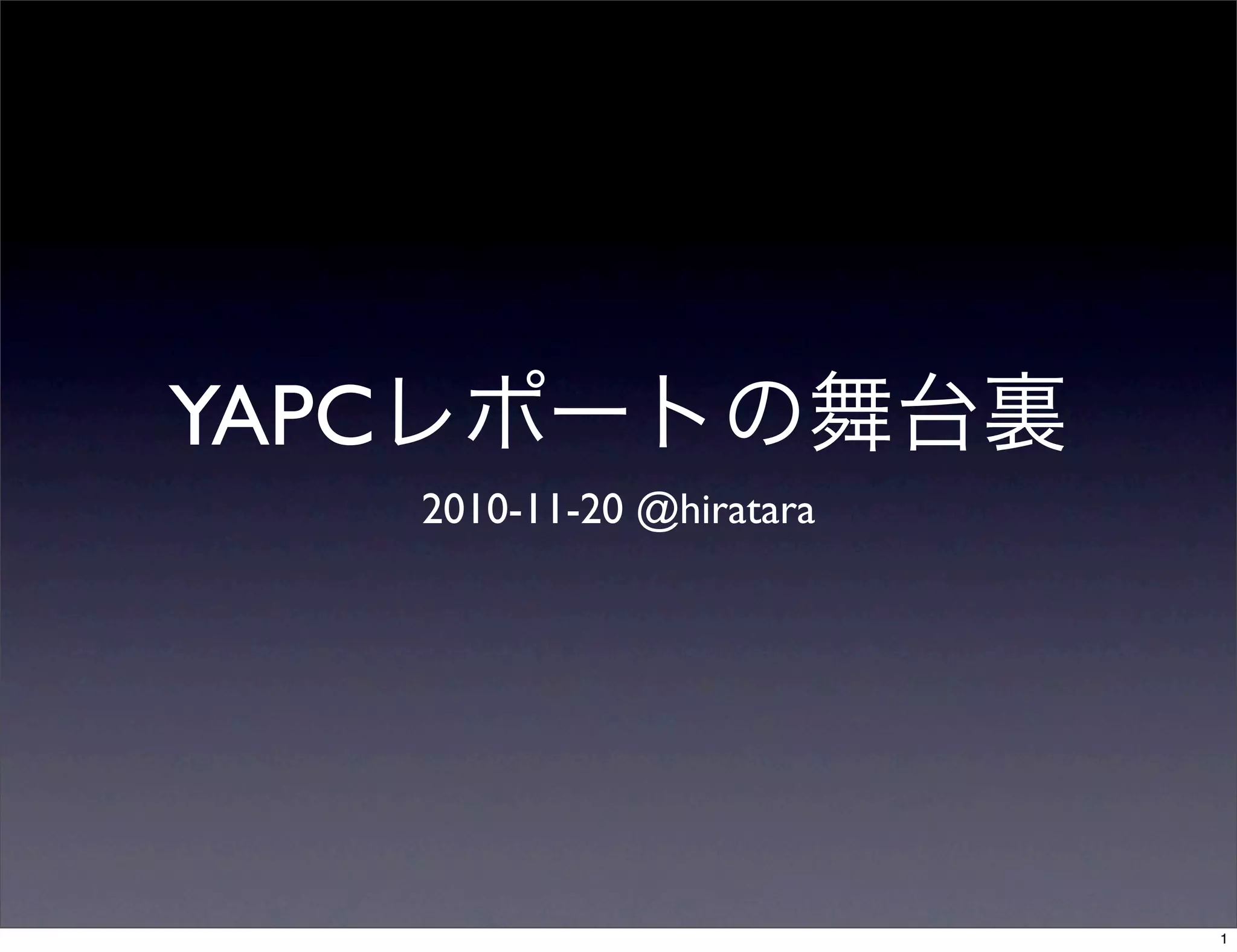 YAPCレポートの舞台裏 2010-11-20 @hiratara 1