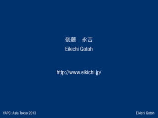 Eikichi Gotoh YAPC::Tohoku 今後の動向は私のブログで報告させていただきます http://www.eikichi.jp/