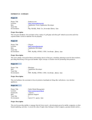 This document contains the resume of Yasher Arafath seeking a position as a software engineer. He has 1.8 years of experience developing web applications using PHP, MySQL, HTML, CSS, JavaScript, jQuery and Ajax. His skills include the Laravel framework and he has experience developing e-commerce, fitness, and art sales websites. He is proficient in PHP MVC patterns and frontend development. He holds a B.Tech in Information Technology and is looking for a challenging position for professional growth.