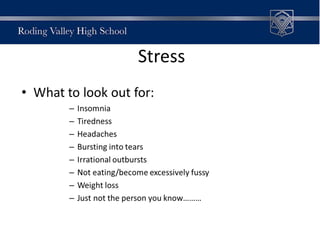 - Advice is given on avoiding exam stress and on who parents can contact with different types of concerns.
