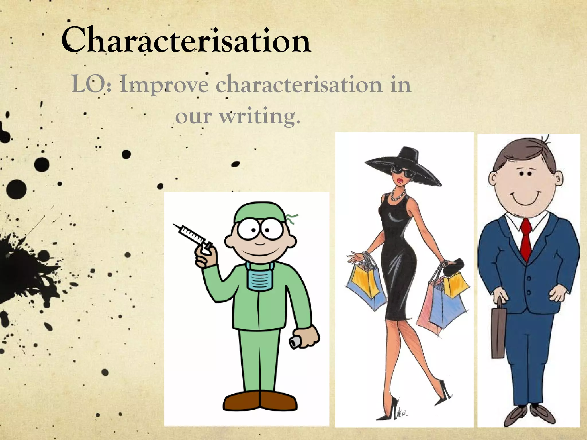 1) Characterisation is the process of creating believable characters in a story through direct or indirect means. Direct characterisation tells the audience about the character, while indirect shows the character through their actions, speech, thoughts, and appearance.