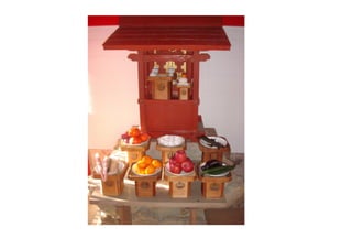 Yearly cycle rituals are celebrations that occur at different points throughout the year. There are two main types - seasonal rituals associated with agricultural practices intended to harmonize social activities with the rhythms of nature or influence the seasons, and commemorative rituals that historically remember the past and reaffirm cultural identities and behaviors. Some examples mentioned are New Year celebrations, Setsubun on February 3rd, autumn harvest festivals, and the Asuke Festival held on the second Sunday of October. Students were assigned a reading and asked to write a two-page resume with discussion questions, and bring money if attending the Asuke Festival.