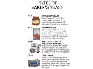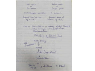 Yeasts have various applications in brewing and food production. Brewers yeast is used to produce beer through the fermentation of sugars into alcohol and carbon dioxide. Food yeast is used in baking to produce leavened bread and other baked goods through a similar fermentation process where yeast converts sugars into carbon dioxide gas which causes dough to rise.