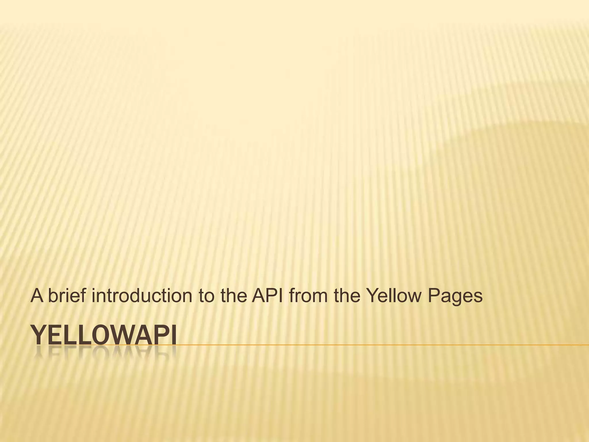 The YellowAPI allows developers to access over 1.5 million Canadian business listings with latitude and longitude data. It has a RESTful architecture that uses GET requests to retrieve business information in XML or JSON formats. Developers can register for sandbox and live API keys to use four methods - FindBusiness for search, GetBusinessDetails for listing details, FindDealer for related businesses, and GetTypeAhead for autocomplete suggestions. The API is currently in beta but provides resources for documentation, support forums, and SDKs to help developers build apps using Canadian business data.