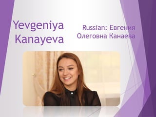 Yevgeniya Kanayeva is a retired Russian rhythmic gymnast who was introduced to the sport at age 6 by her grandmother. She won gold medals in the all-around event at the 2008 and 2012 Olympics. Kanayeva trained under coach Irina Viner and was part of the Russian national team from 2005 to 2012, when she retired from competition. She is the most decorated rhythmic gymnast in history with over 25 medals from the Olympics, World Championships, and World Games.
